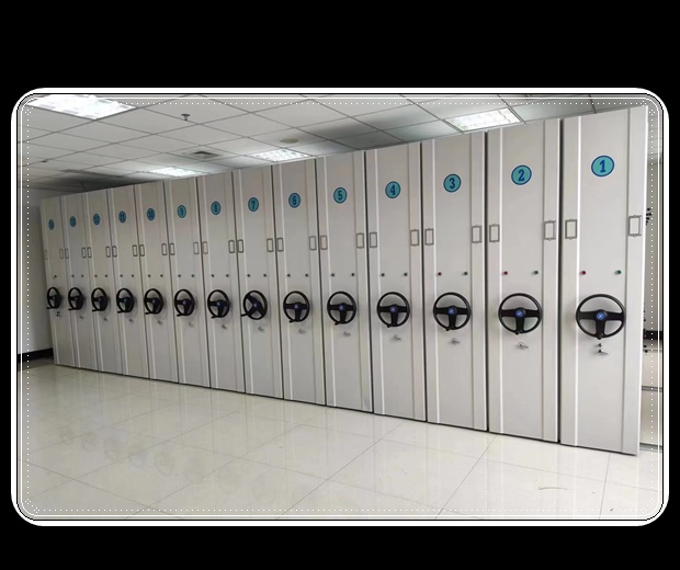 電腦密集架具有載量多,使用方便等特點,主要用于檔案資料、證券憑證等的存放。主要由軌道、柜體、底盤、面板、門板、目錄卡及傳動裝置、防倒裝置、密封裝置九部分組成: